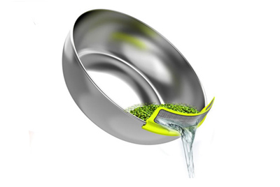 Чтобы без потерь промывать рис, горох и всевозможные крупы, вовсе не обязательно использовать дуршлаг или сливать воду через пальцы. Можно воспользоваться устройством, изобретённым корейским дизайнером Wei Min. Оно представляет собой эластичную мелкоячеистую сетку, которую можно надеть на кастрюлю любого размера, а после использования снять.